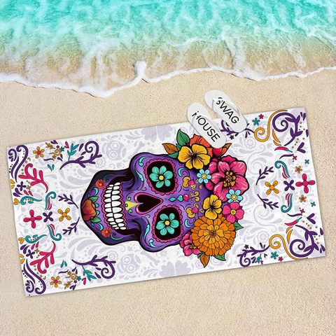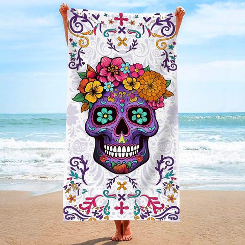 Toalla de playa de calavera de azúcar de gamuza ecológica personalizada, microfibra de secado rápido de alta absorción, estilo moderno para el día de Halloween muerto