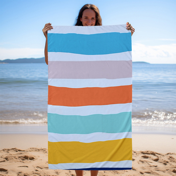 Serviettes de plage à séchage rapide sans sable personnalisées en microfibre Serviettes de plage rayées avec logo personnalisé Serviettes de plage imprimées à haute absorption